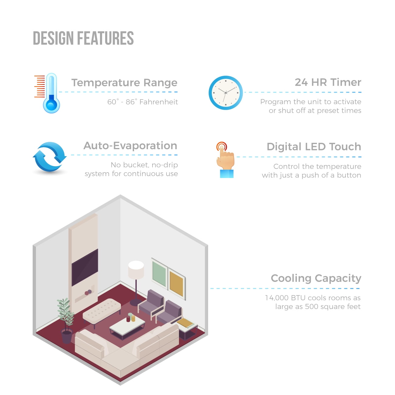Della 14 000 Btu Evaporative Portable Air Conditioner Heater Dehumidifier Cooling Function Led Panel Control Timer Walmart Com Walmart Com